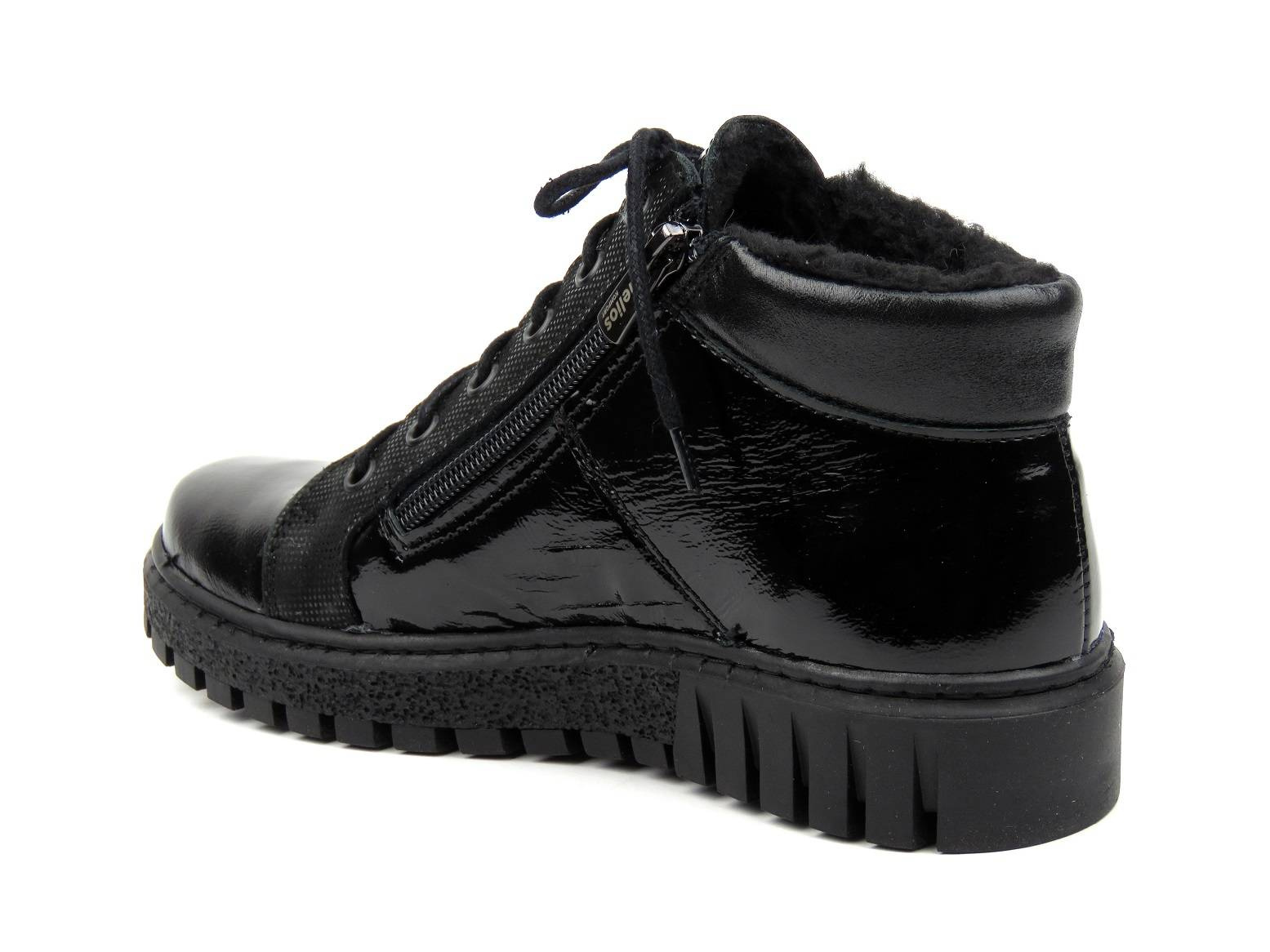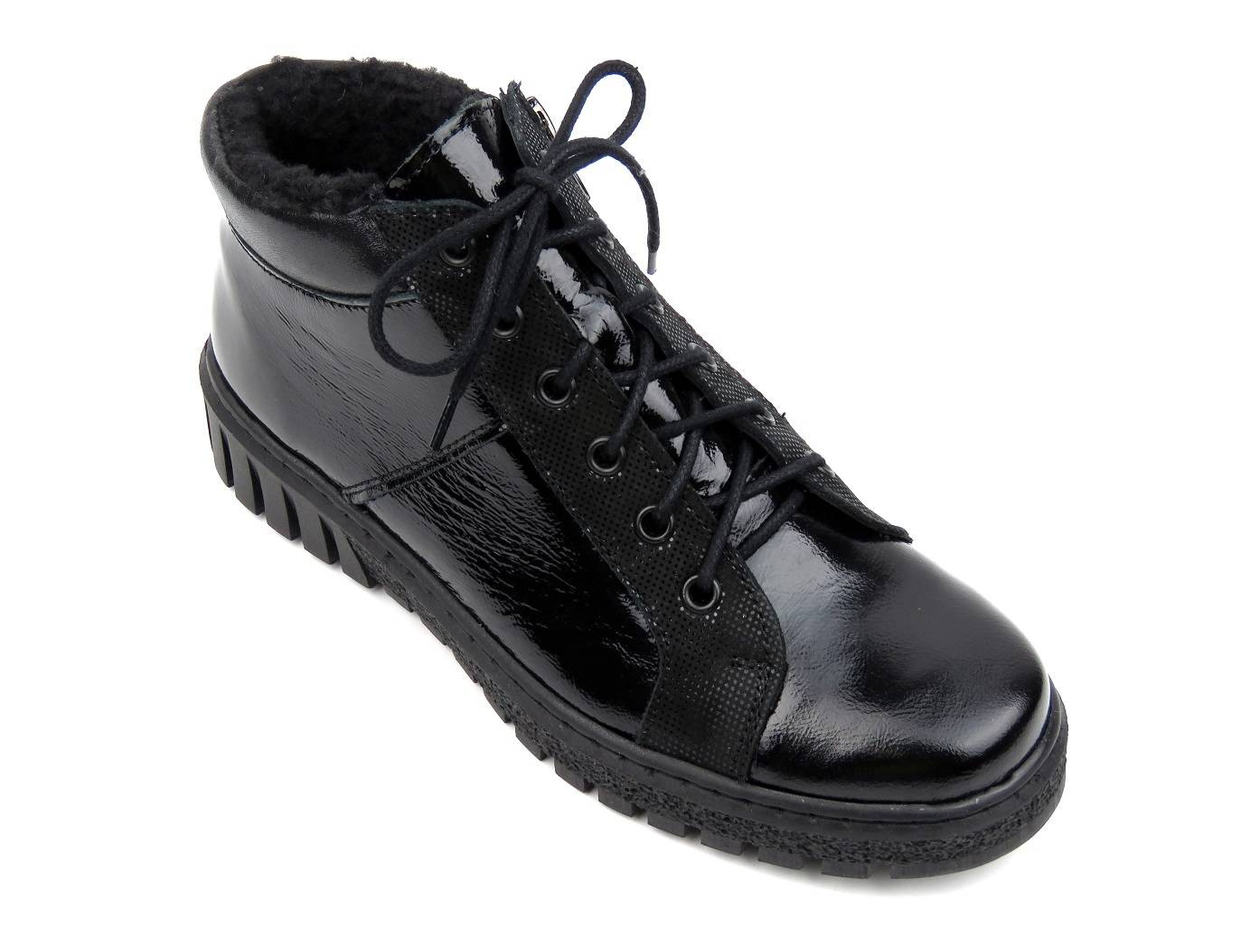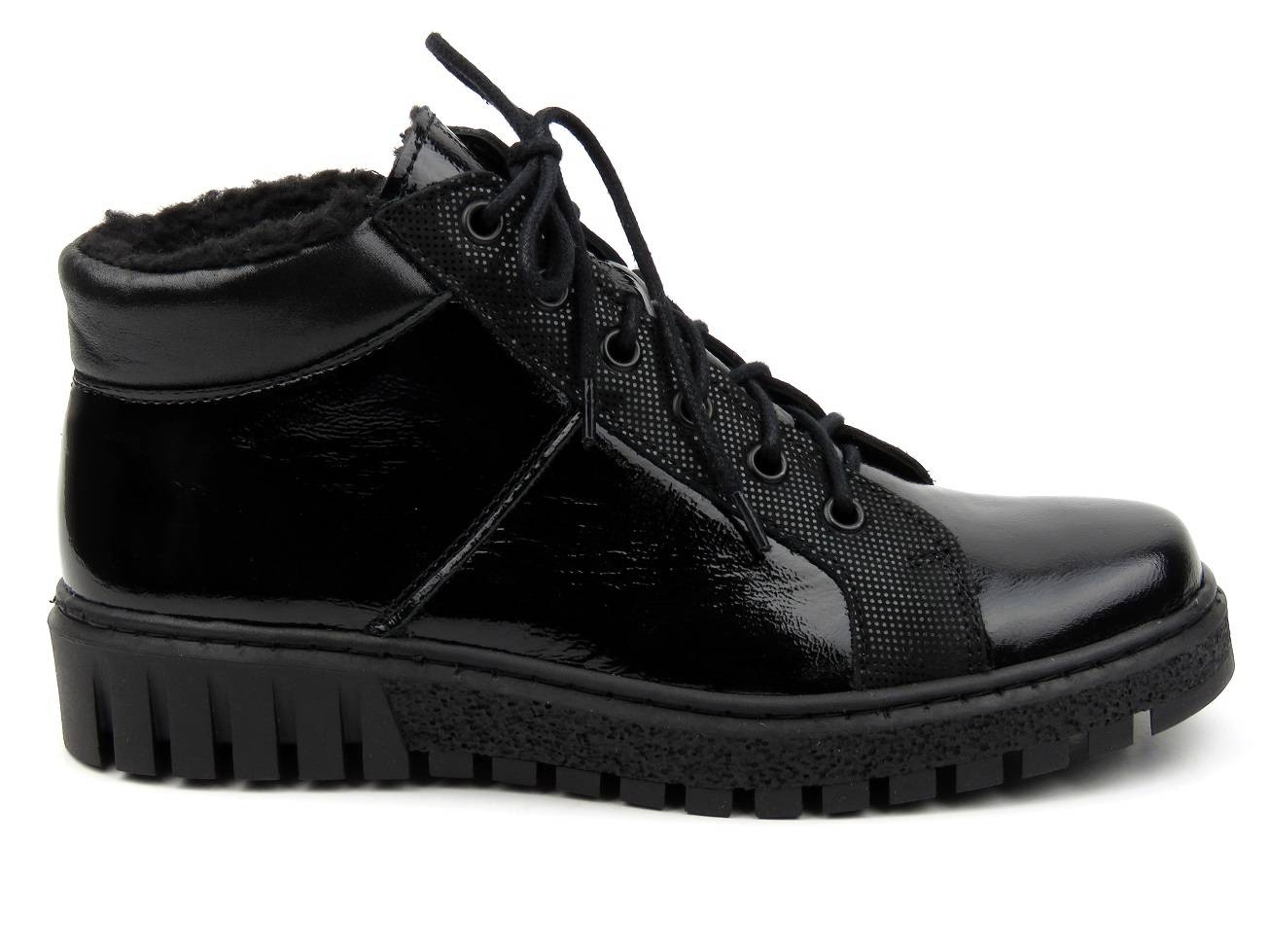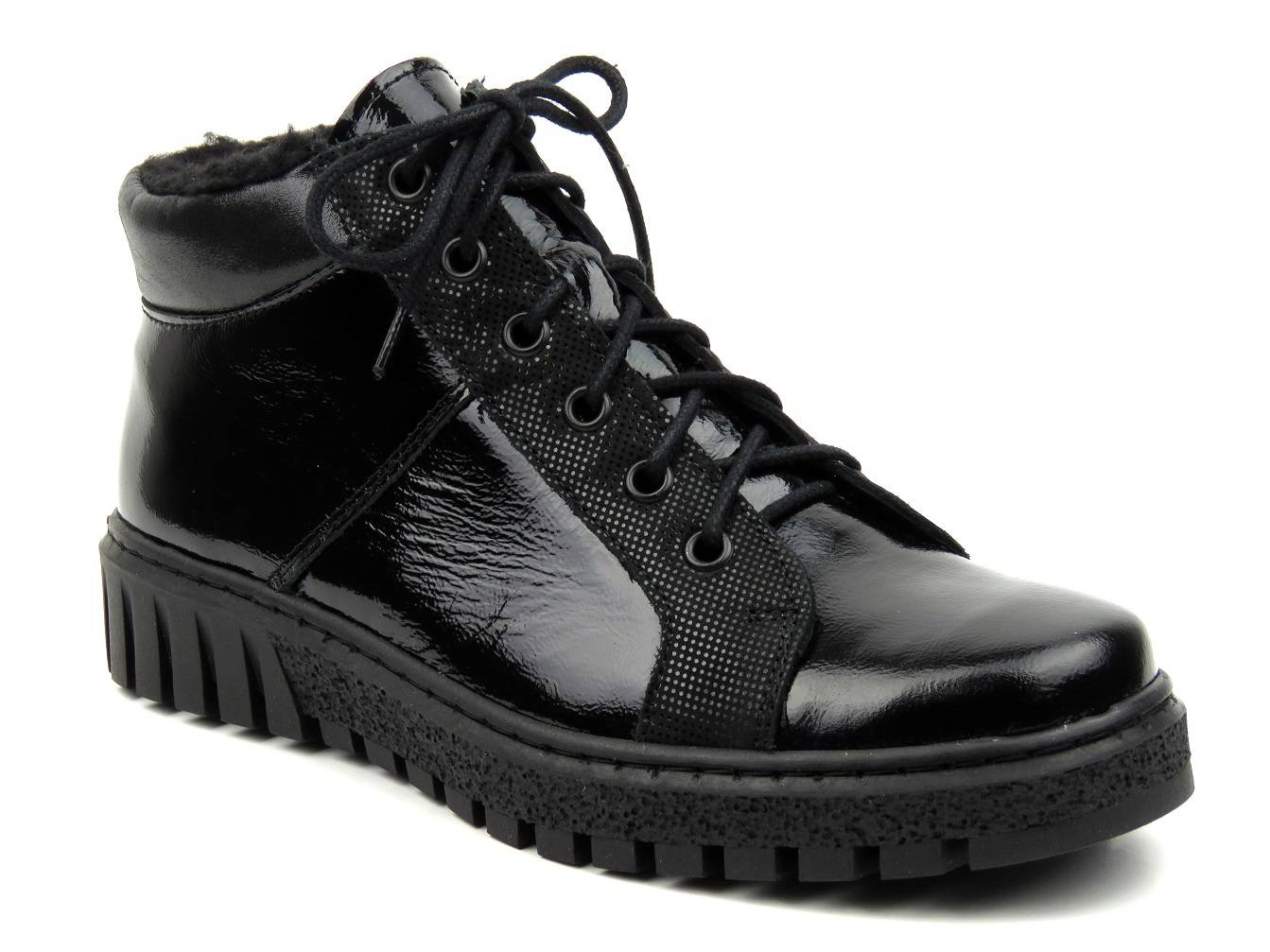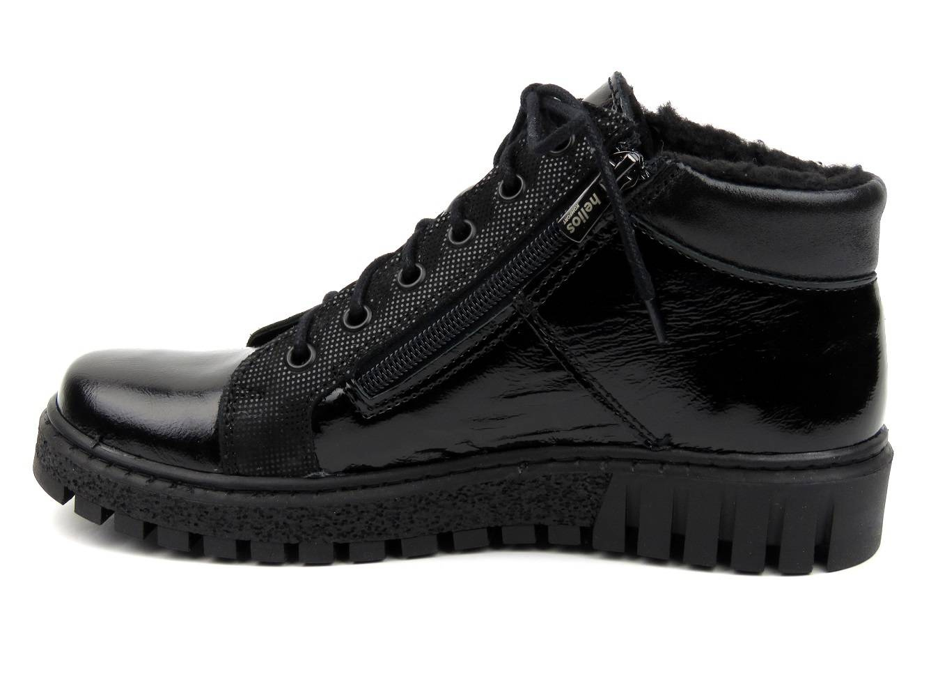 Trzewiki, botki damskie na traperowej podeszwie - HELIOS 522, czarne, lakierowane