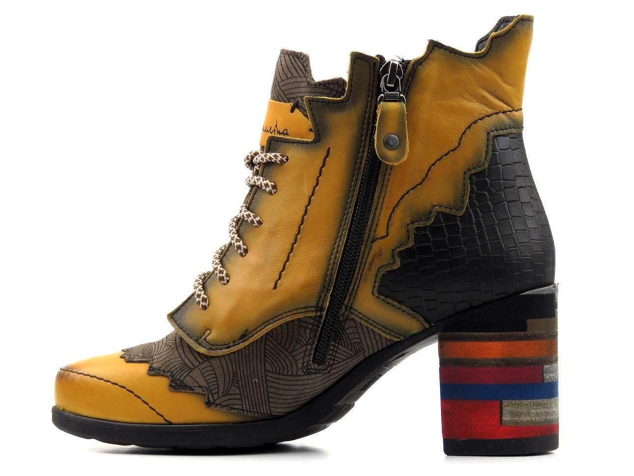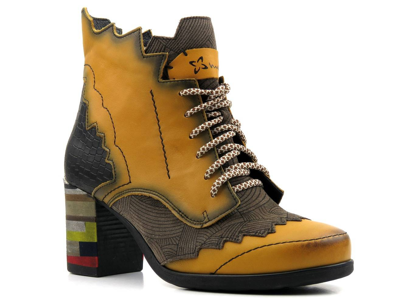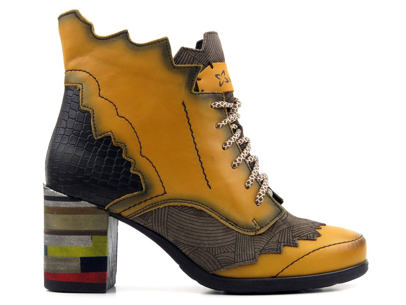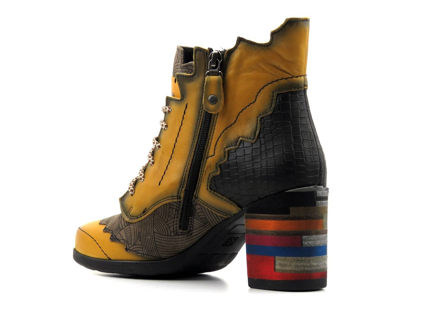 Botki damskie na kolorowym obcasie - MACIEJKA 03190, żółte