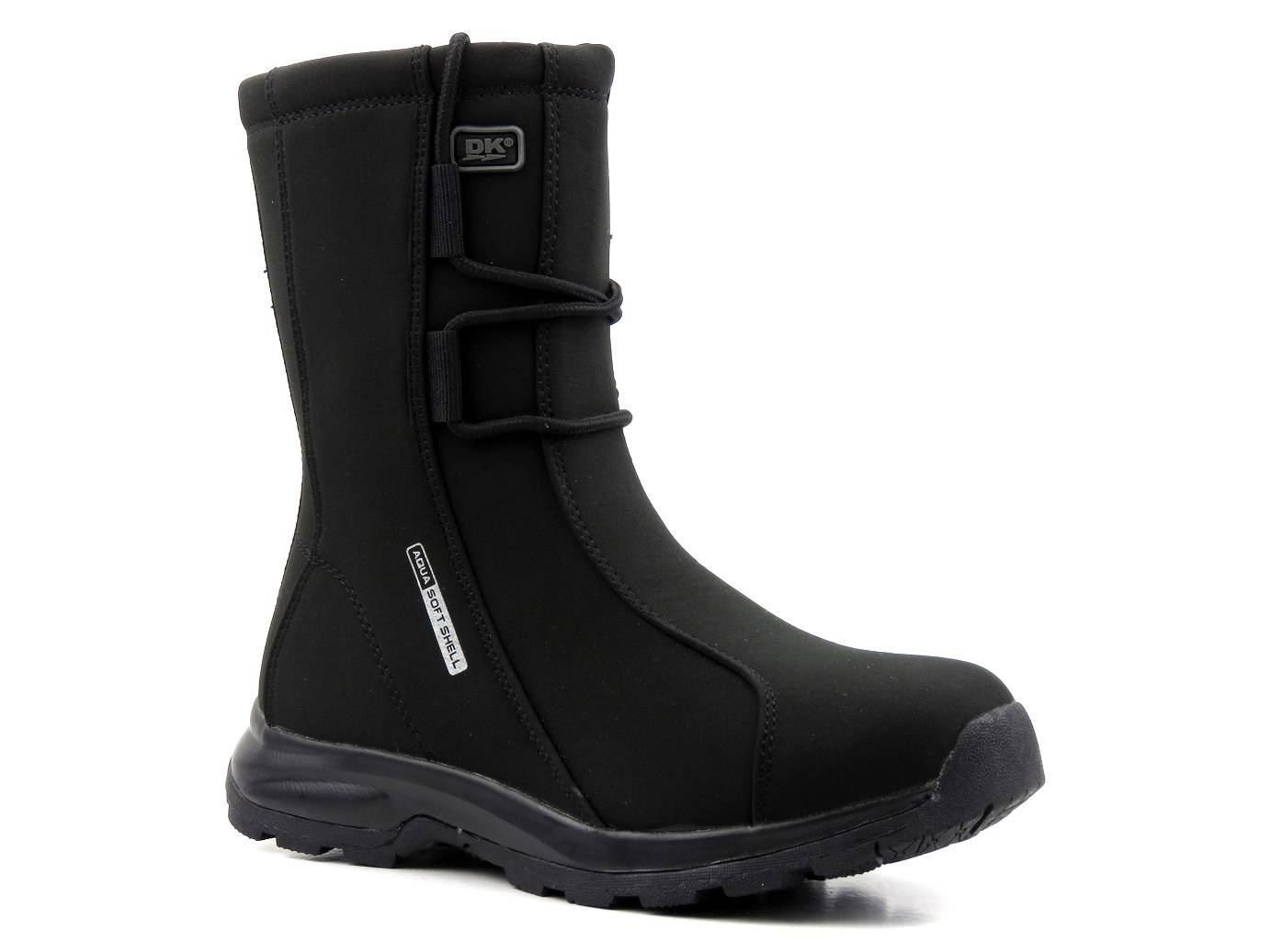 Cholewka śniegowców damskich marki DK została wykonana z wykorzystaniem zaawansowanego technologicznie materiału SOFTSHELL. Materiał ten tworzą specjalnie dobrane warstwy, które złączone ze sobą zwiększają ochronę przed wiatrem i deszczem, zarazem zapewniając właściwą wentylację wewnątrz buta. Zewnętrzne warstwy SOFTSEHELL zapewniają wiatroodporność i wyższą odporność na wodę, natomiast jej wewnętrze warstwy pozwalają utrzymać odpowiedni poziom ciepła w środku obuwia. Całość ma właściwości oddychające, a także jest miękka i elastyczna, dzięki czemu zapewnia wysoki komfort.