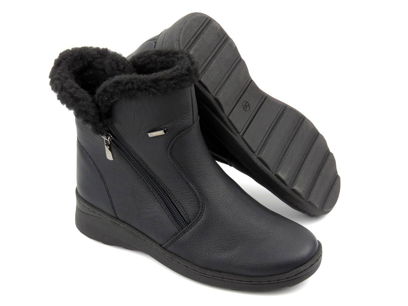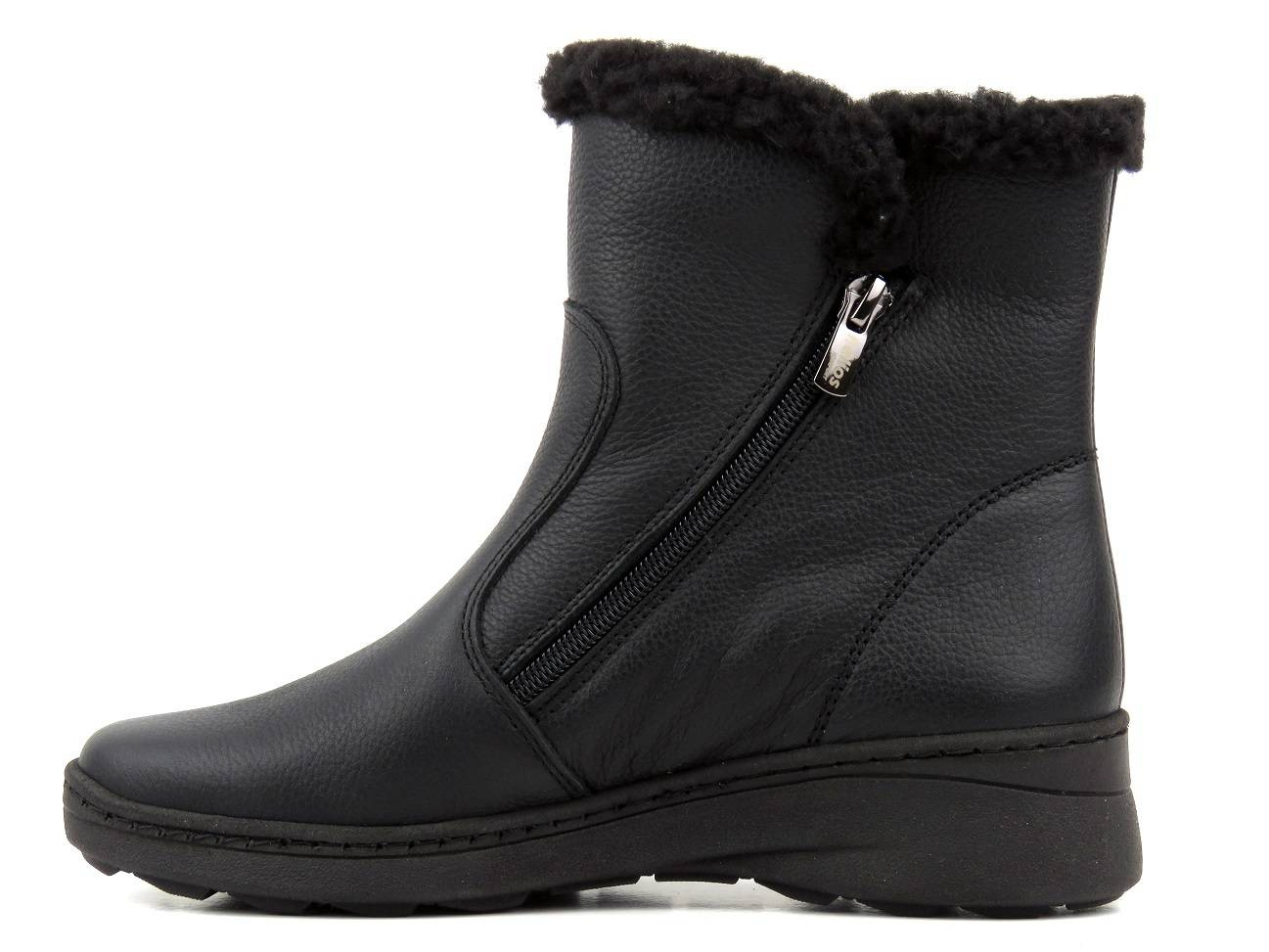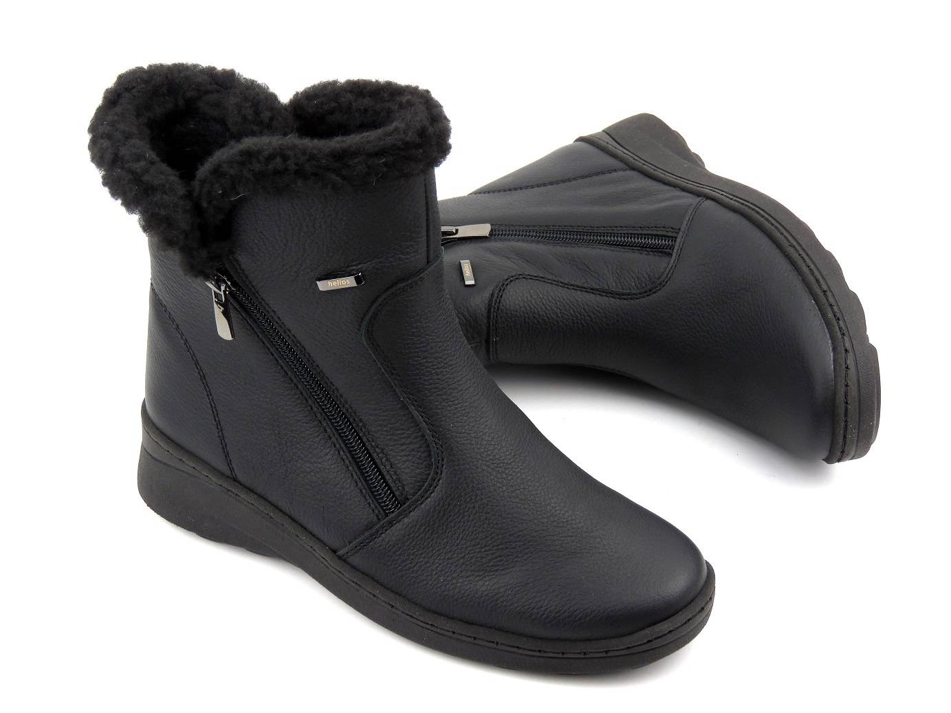 Wygodne botki damskie ocieplone kożuchem - HELIOS Komfort 514, czarne