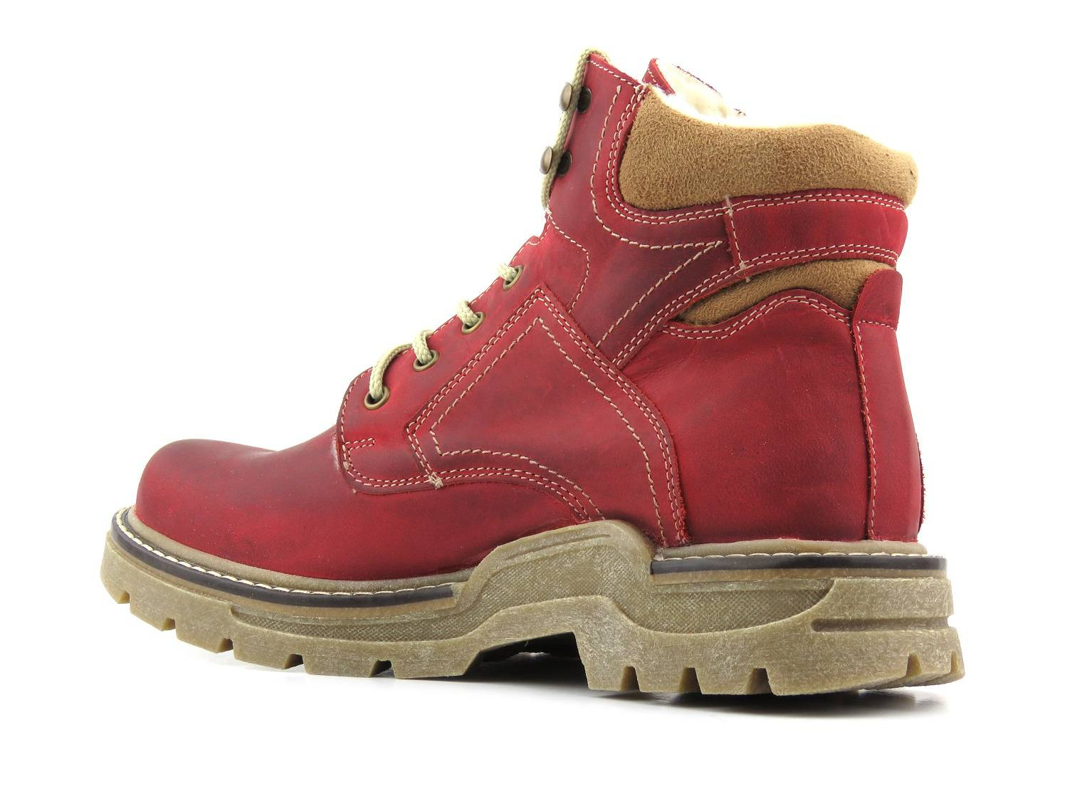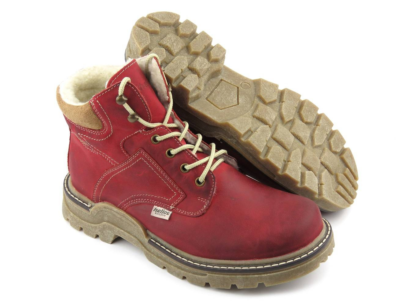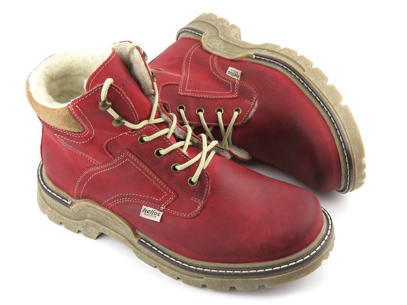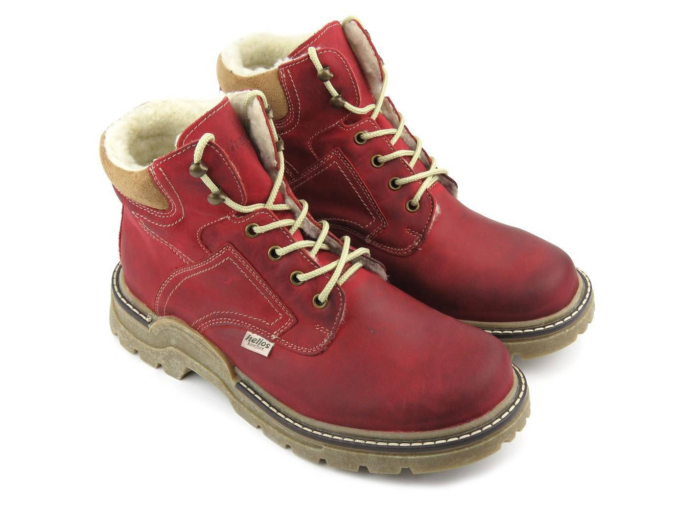 Skórzane trapery męskie ocieplone wełną czerwone HELIOS Komfort 816