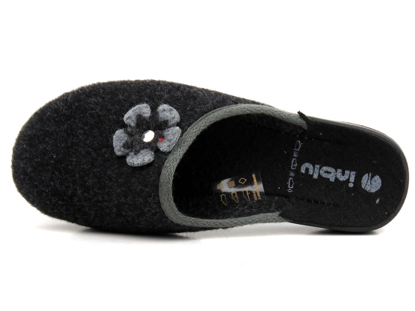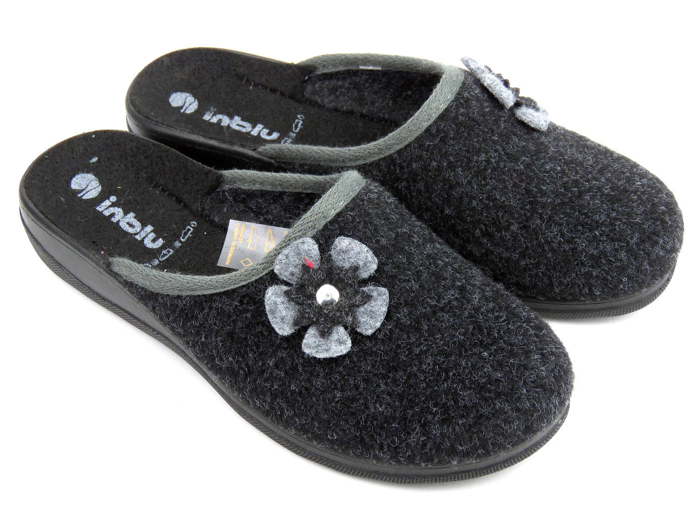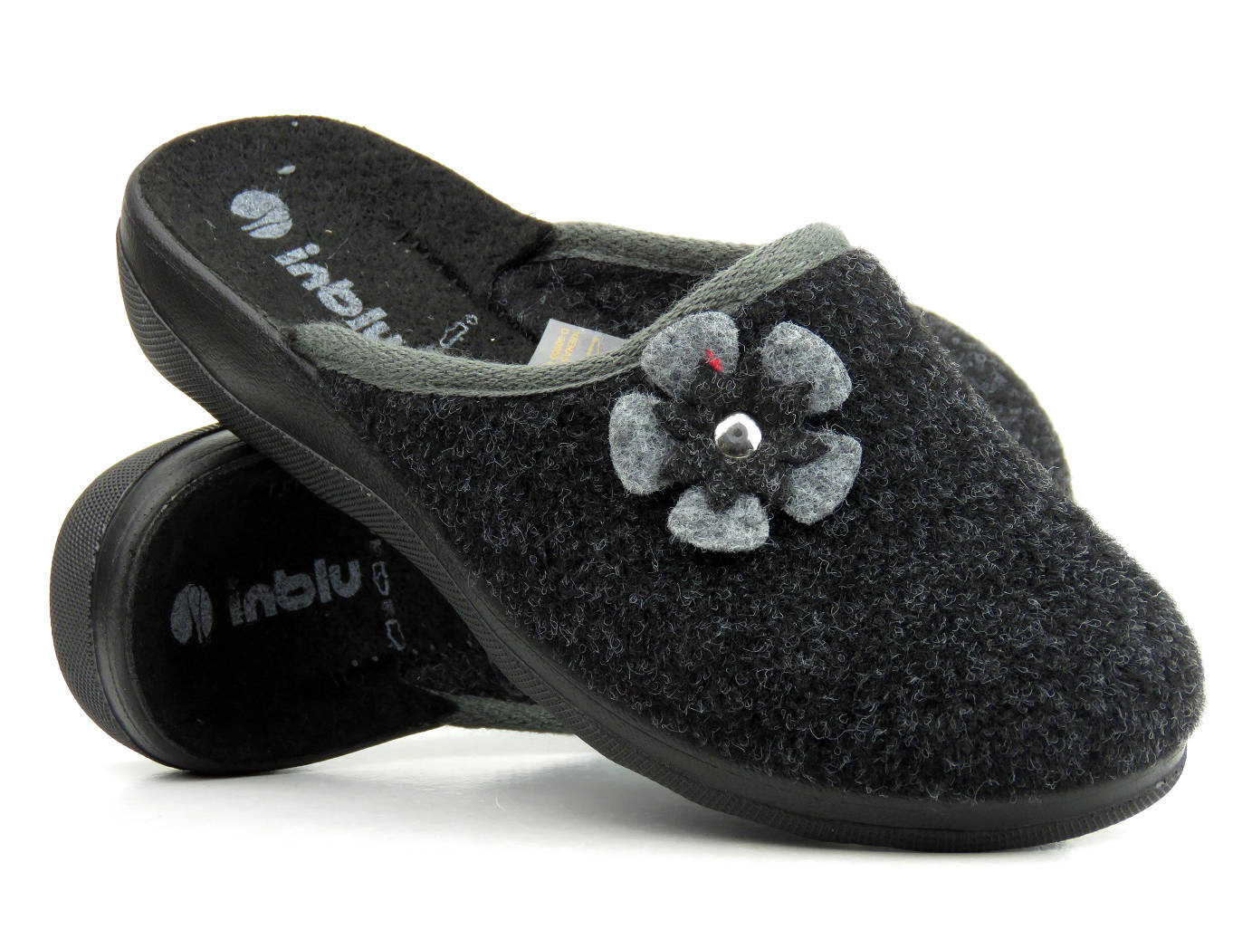 Ciepłe kapcie damskie z kwiatkiem na cholewce - INBLU 064-86, grafitowe