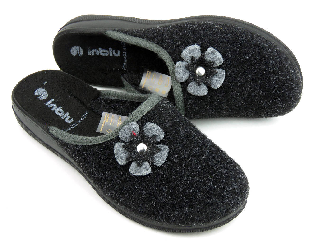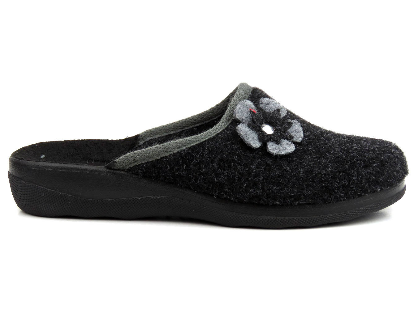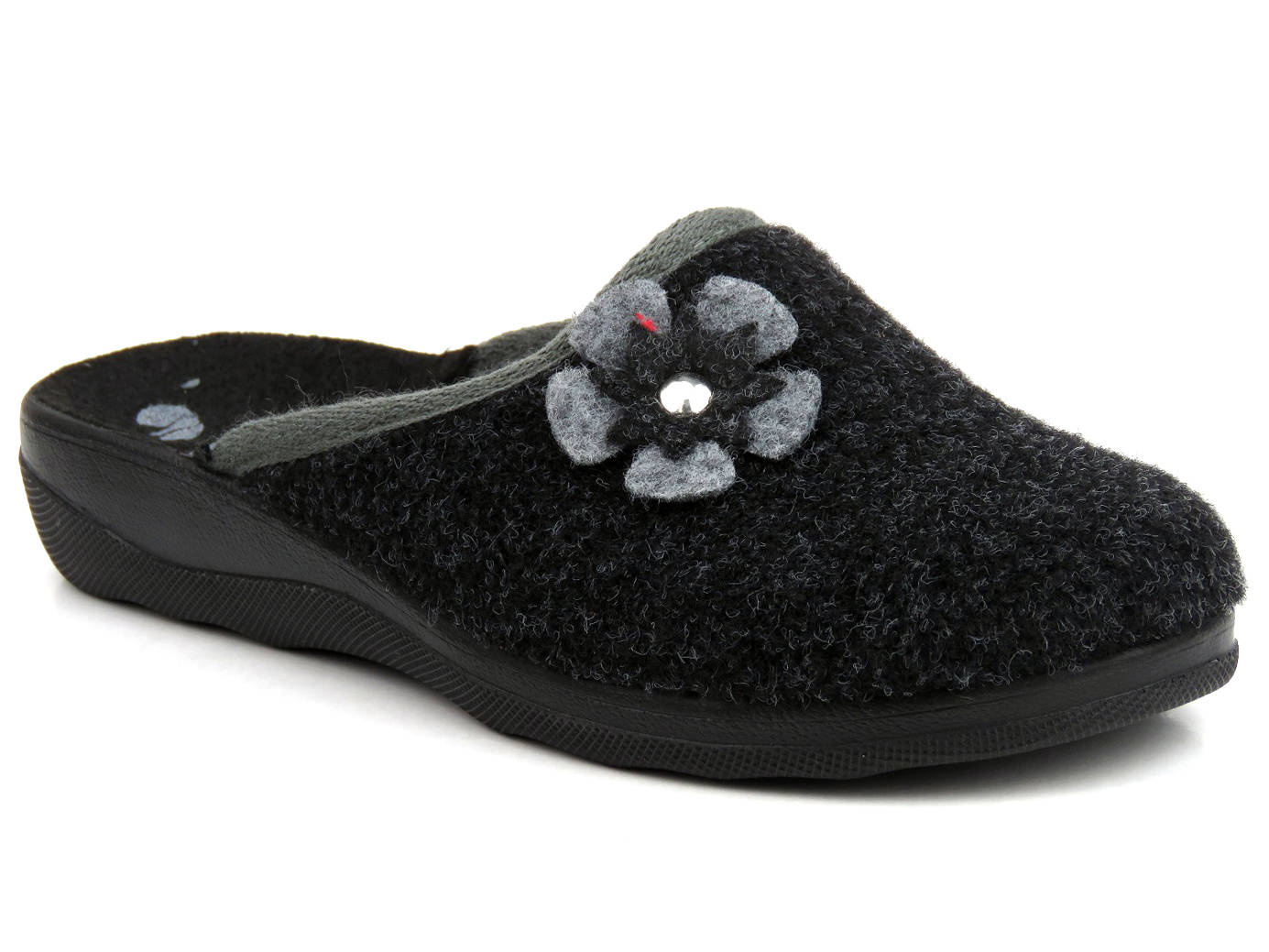 Ciepłe kapcie damskie z kwiatkiem na cholewce - INBLU 064-86, grafitowe