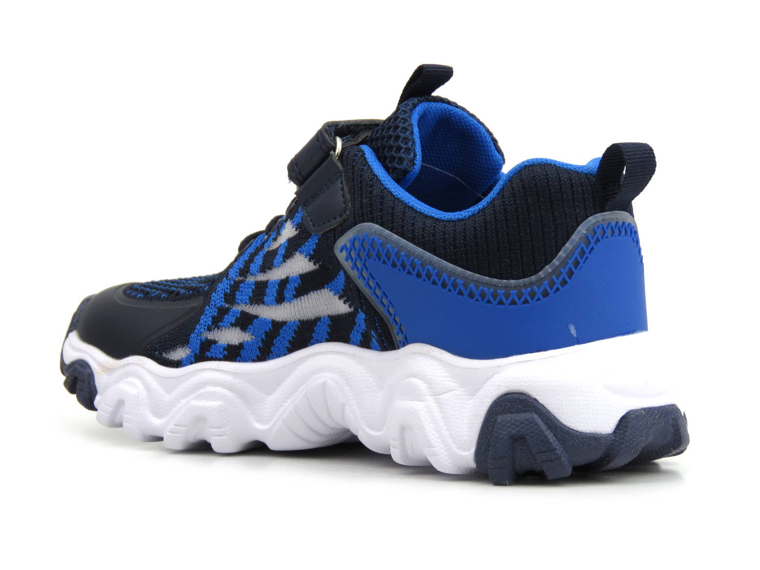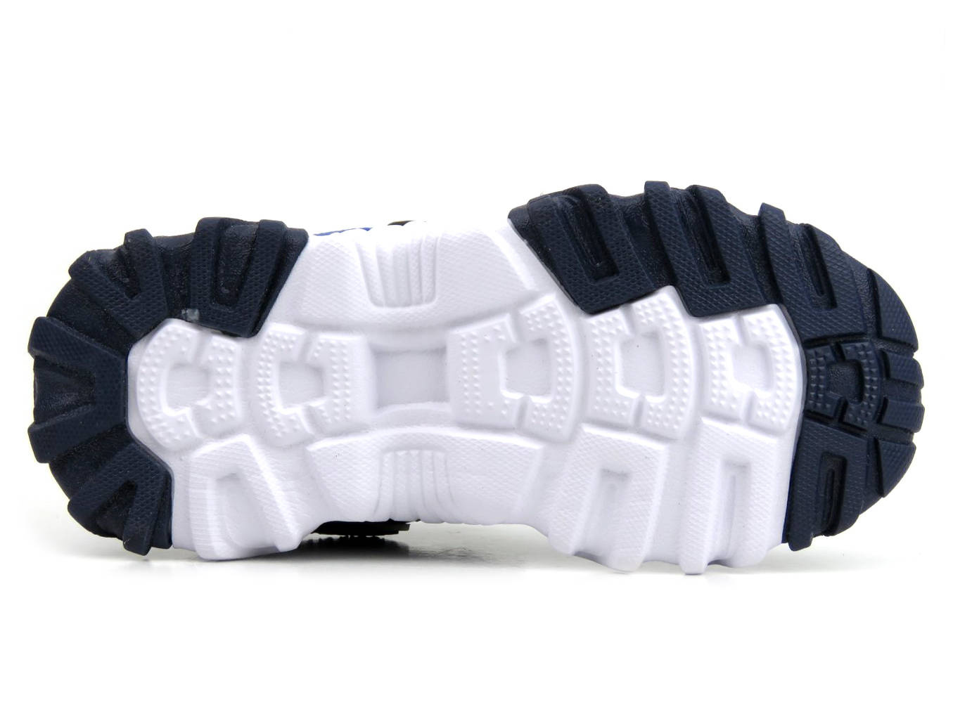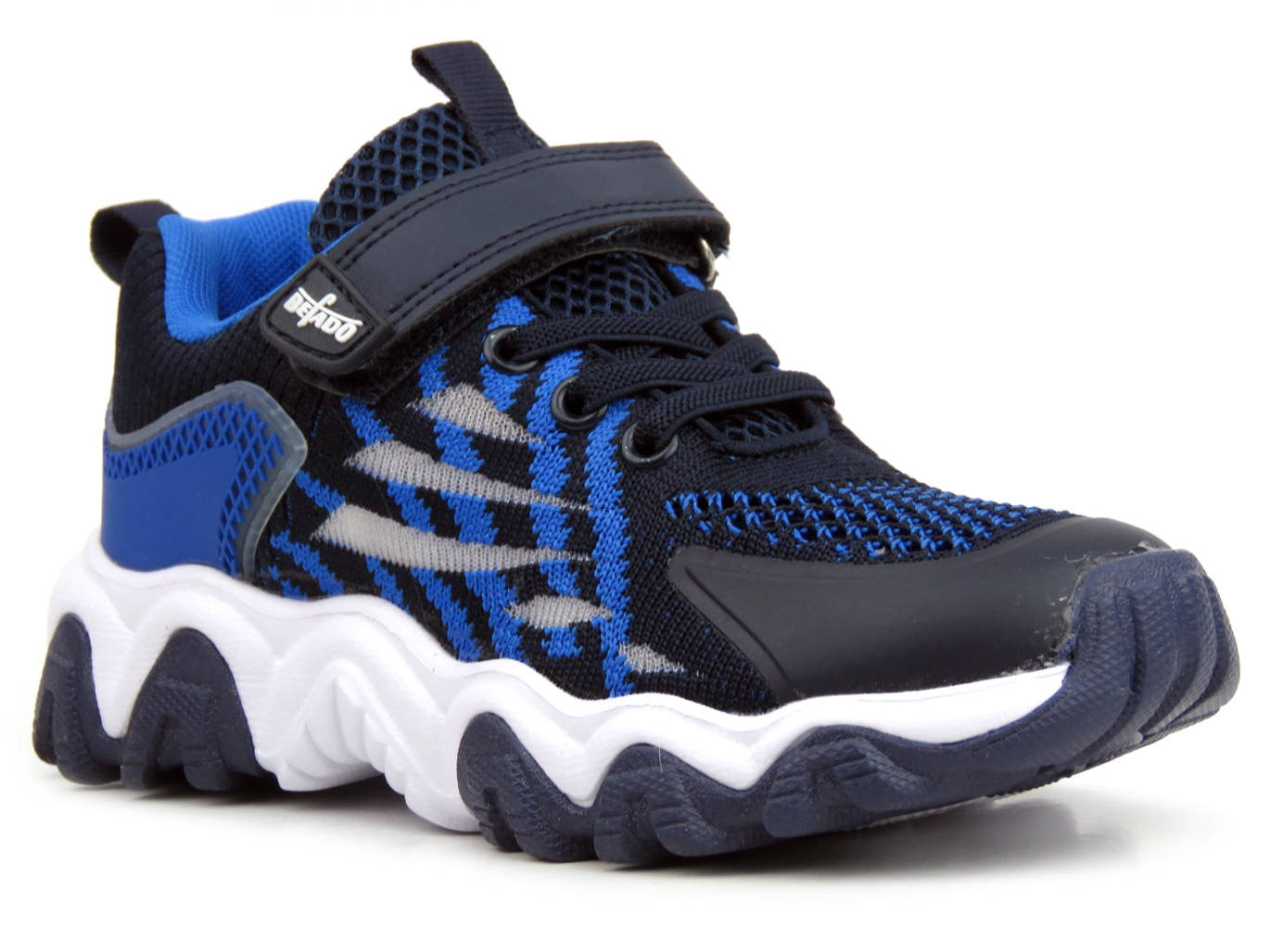 Obuwie sprawdzonej polskiej marki Befado zostało wykonane z przewiewnej, siateczkowej tkaniny w kolorze granatowym. Wyściółka zrobiona jest z miękkiej tkaniny. Elastyczne sznurówki dostosowują się do szerokości stóp dziecka. Zapięcie na rzepy pozwala na jeszcze lepsze dopasowanie i wygodne zakładanie. Gruba, oryginalna podeszwa dobrze trzyma się podłoża. Nosek jest podwyższony dla zapewnienia odpowiedniej ochrony. Sportowy wzór to idealna propozycja do codziennego noszenia.