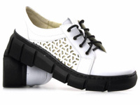 Wygodne półbuty damskie skórzane - Helios Komfort 375S, białe