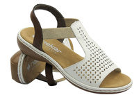 Sandały damskie płaskie - Rieker 65917-80 białe wygodne przewiewne lekkie
