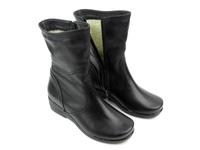 Wygodne, skórzane botki damskie ocieplone wełną - Agxbut 517, czarne