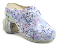 Wygodne klapki damskie skórzane, medyczne - Nursing Care WG4AF18, fioletowe w kwiaty