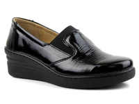 Skórzane półbuty damskie zapinane na rzep - Helios Komfort 403-2, czarne