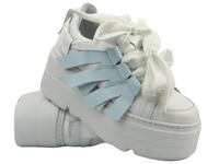 Sportowe buty damskie na platformie - CheBello 4719, białe-wiązane